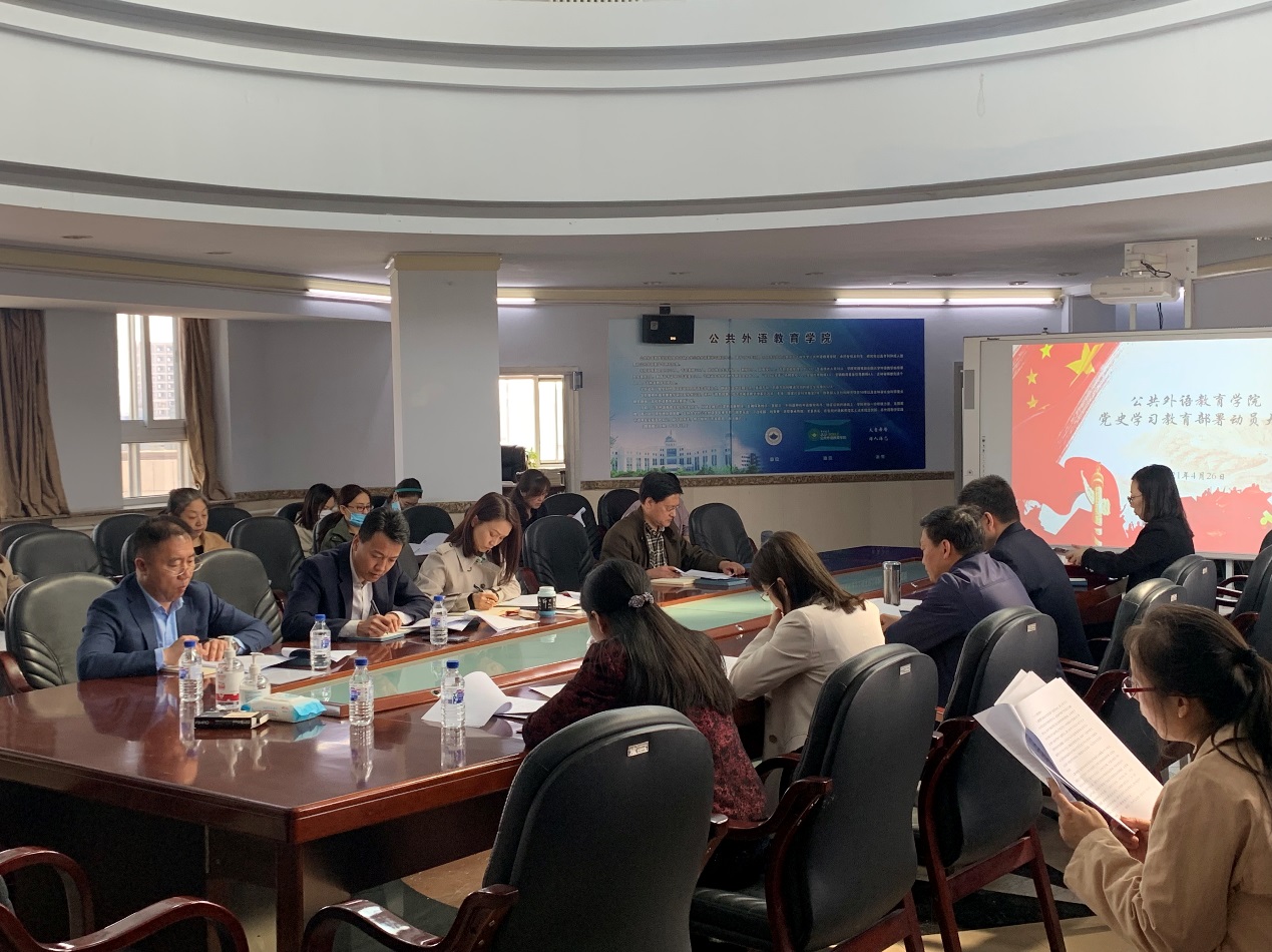 贺强书记首先宣读关于成立学院党史学习教育领导小组的决定。同时解读了《中共吉林大学公共外语教育委员会关于开展党史学习教育的实施方案》及《党史学习教育第一阶段学习计划》相关内容,对学院党史学习教育的学习目标、学习内容、进度安排进行部署。强调了开展党史学习教育的重要意义,开展党史学习教育,是坚持不懈用党的创新理论武装头脑的重大举措,是持续巩固“不忘初心、牢记使命”主题教育成果的战略安排,是深化党员干部队伍建设的重要途径。要求各基层党支部结合支部自身特色将党史学习教育与党日活动等有机结合,确保党史学习教育取得扎实成效。