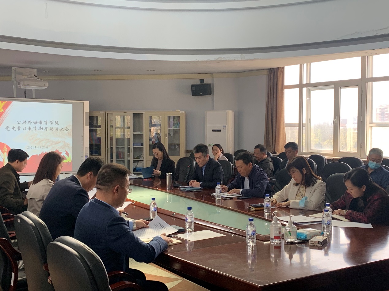 按照学校党史学习教育相关要求部署,2021年4月26日下午公共外语教育学院召开党史学习教育动员部署会,校党史学习教育第14指导组到会指导,学院领导班子成员、党委委员、纪委委员及各党支部书记参加了会议。会议由学院党委书记贺强主持。