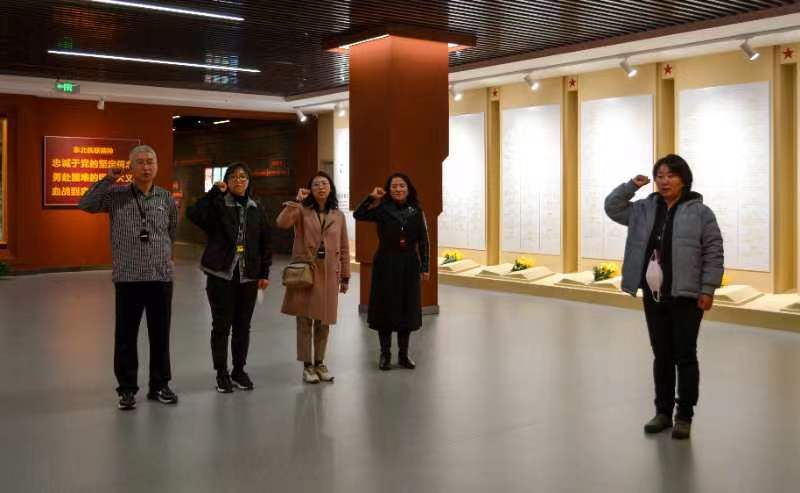 参观结束后,全体党员为抗日英烈敬献鲜花,以表哀思。最后,在庄严的党旗下,党员们在董育英书记的带领下重温入党誓词,牢记作为共产党员的使命与担当,为共产主义事业奋斗终身。在这场战争中,我们的民族承载了太多的苦难,付出了巨大的代价,曾经的屈辱时刻提醒着我们要居安思危,不忘初心,砥砺前行。