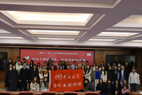 为深入学习宣传贯彻党的二十届三中全会精神,2024118日,吉林大学博士生讲师团走进公共外语教育学院,开展以坚定不移抓改革,锐意进取促发展为题的党的二十届三中全会精神系列宣讲活动。次活动由李颂婧讲师进行宣讲,公共外语教育学院辅导员林明帅,研究生一、三支部全体党员,入党积极分子及入党申请人等百余名研究生参加。