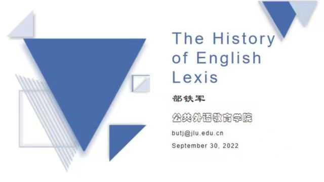部老师首先谈到:语言的变迁反应了社会的发展变革英语词汇的发展史承载了这个国家的变革历程语言与文化的交融让语言学习充满了乐趣与挑战。随后,部老师利用实际例子讲述了英语发展史上的几次大的语言变革,从古英语讲到现代英语,从央格鲁-萨克逊语讲到后来的大量法语词汇的融入,拉丁语、希腊语及一些文学作品对英语词汇的影响等。 最后,部老师介绍了一些词根和词缀的演化过程和意义,以激发教师词汇教学的思考。