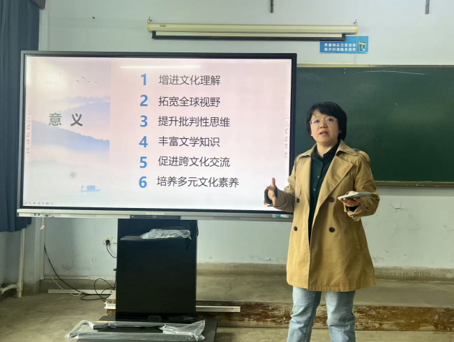 接下来,李楠老师聚焦于“如何在英美文学课上引入中国文学进行比较分析”,介绍了她的授课思路及亮点。她谈到,中国文学与英美文学的对比可以增进学生对异质文化的理解,扩宽全球视野,提升批判性思维,丰富文学知识,促进跨文化交流,培养多元文化素养。并用实际例子对比了莎士比亚《十四行诗18》、彭斯《一朵红红的玫瑰》、拜伦《她在美中行》与中国古代诗歌的共通之处。