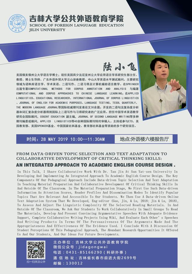 时间:2019-05-24 作者: 文章来源:公共外语教育学院 浏览量: