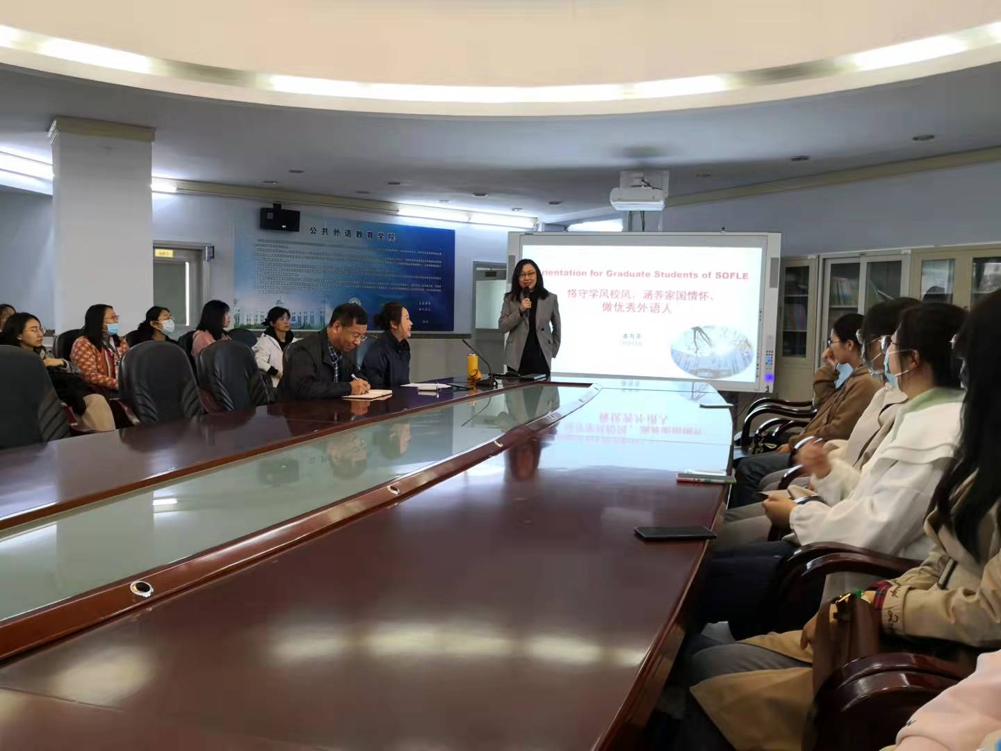 公共外语教育学院院长潘海英为2021级研究生新生上了一堂以“恪守学风校风、涵养家国情怀、争做优秀外语人”为主题的开学第一课。潘院长详细介绍了学校、学院的整体情况以及学科建设情况,讲解了研究生培养过程以及学习阶段必备的品质,从外语学习学科特点出发为新生们介绍了如何进行科学研究,并嘱托同学们研究生生涯要做好学习和生活方面的规划。报告会让新生们更好地了解了学校和学院历史,尽早明确目标,向榜样学习,不断增长自身能力,提高综合素质,用实际行动诠释吉大精神,争做优秀外语人,为祖国事业的蓬勃发展做出自己的贡献。