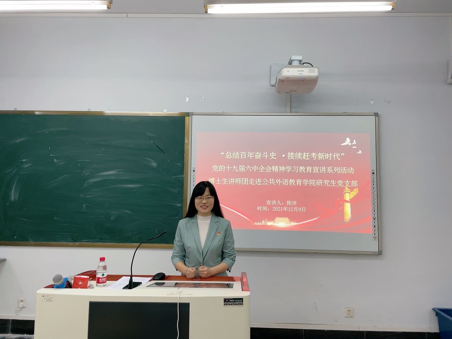 “总结百年奋斗史 ·接续赶考新时代”党的十九届六中全会精神学习教育宣讲系列活动博士生讲师团走进公共外语教育学院研究生党支部