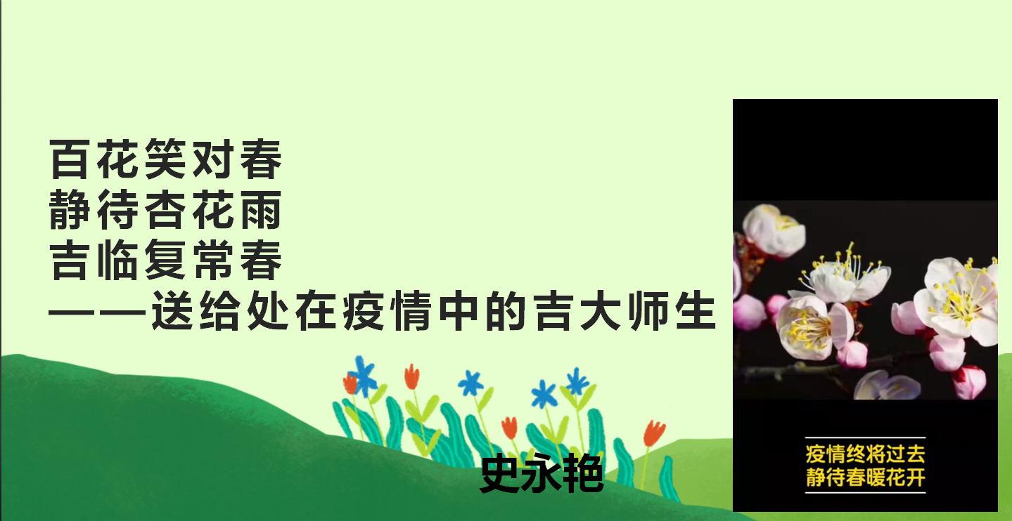 此次活动采取线上投票的方式,设置一、二、三等奖以及优秀奖若干,极大地激励了同学们的创作热情,同时也增强了同学们的战“疫”信心。三行短句,一封家书,语言简练,意味深长。同学们用简单、真挚的三句话,把对家人、朋友、爱人,甚至是陌生志愿者的情感倾注于笔尖,镌刻在心中。短短三行,是信更是情。“疫中撑‘伞’,雪中温暖,最是心安”,“三月桃花雪,大白隐匿;数不尽无畏英雄,临难不避;晨辉,曙光,明日”……同学们才思泉涌,各显神通,充分展现了吉大人良好的精神风貌。