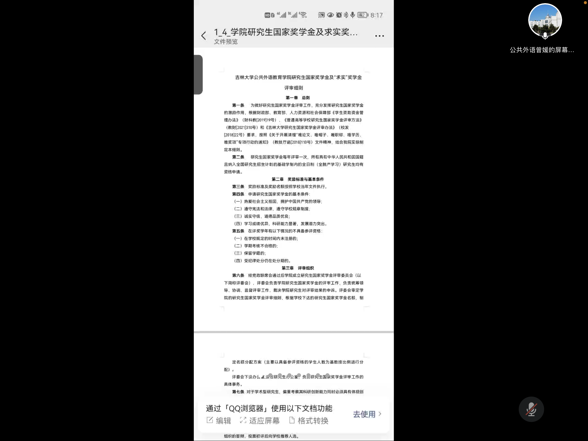 分享会后公共外语教育学院研究生辅导员曾媛为大家详细讲解了吉林大学公共外语教学院各项奖学金的评审细则,鼓励大家在读研期间,锐意进取、拼搏创新。