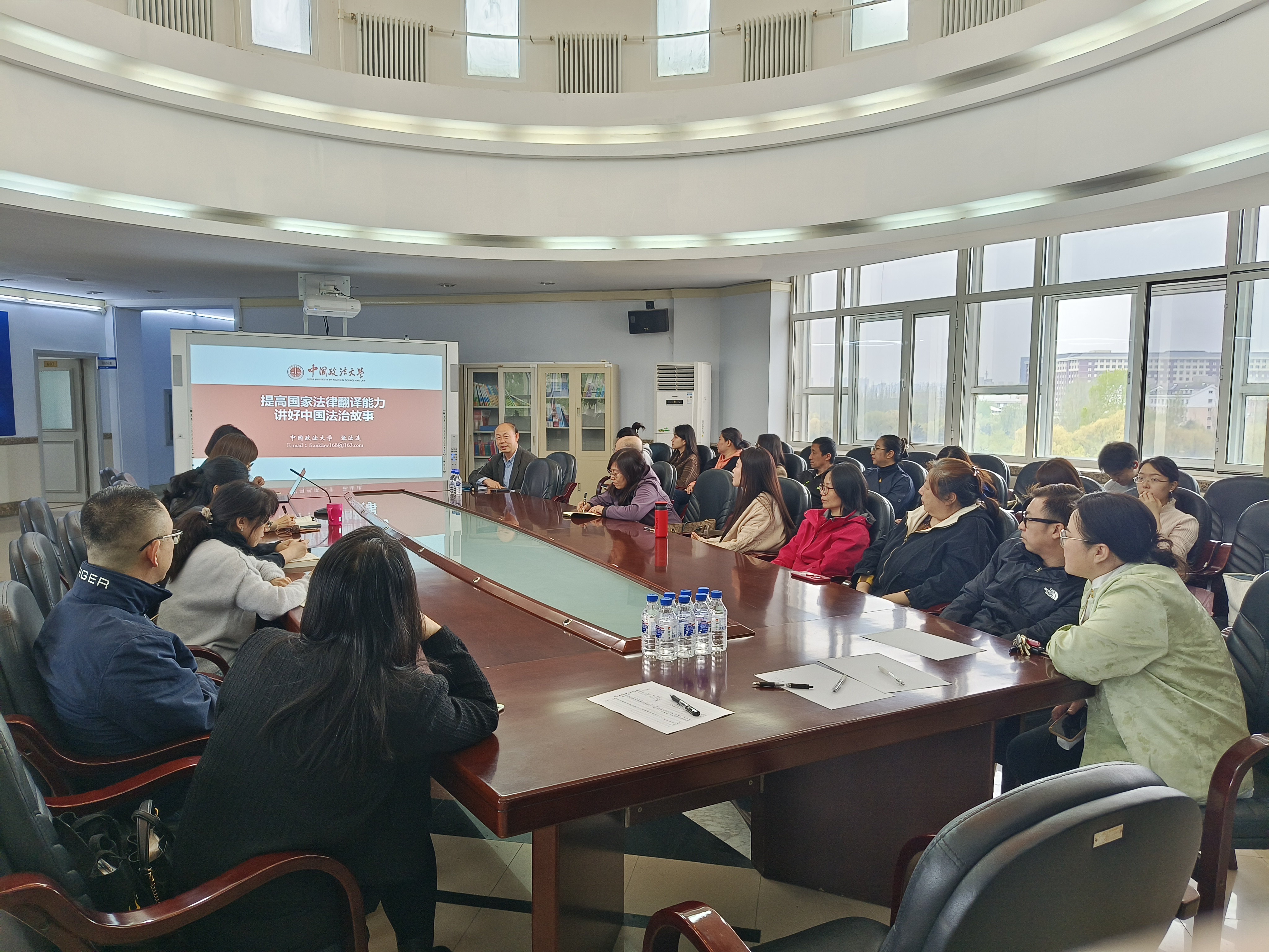 张法连教授的讲座主要包括法律翻译的时代背景、国家法律翻译能力内涵界定、国家法律翻译能力要素构成、国家法律翻译能力各要素关系及发展前瞻等内容。他指出,法治是人类文明进步的重要标志,是国际交往的最大共识。国家法律翻译能力是国家翻译能力不可或缺的组成部分,是贯彻落实习近平法治思想、统筹推进国内法治和涉外法治的关键抓手。讲座中,张法连教授旁征博引,通过生动详实的案例为在场师生进行讲解。同时,他强调国家法律翻译能力要以国家利益为重,服务于国家涉外法治战略需求,提升国家法律翻译能力是讲好中国法治故事的前提保障。