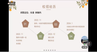 张艺蕙结合自身经验,详细回顾了自身的校招经历,并分享了自己最终选择当前工作的原因以及成功上岸“强师计划”的经验。张艺蕙主要从工作环境、薪资待遇以及教育压力三个方面分享自己目前的工作状况,帮助同学们了解就业形势,确立就业目标。她还鼓励大家提前了解就业信息,明确自己的方向,早日为就业做好准备。